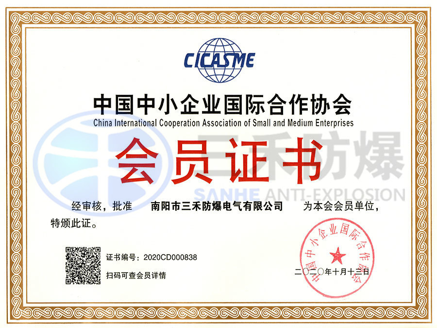 中国中小企业国际合作协会会员证书
