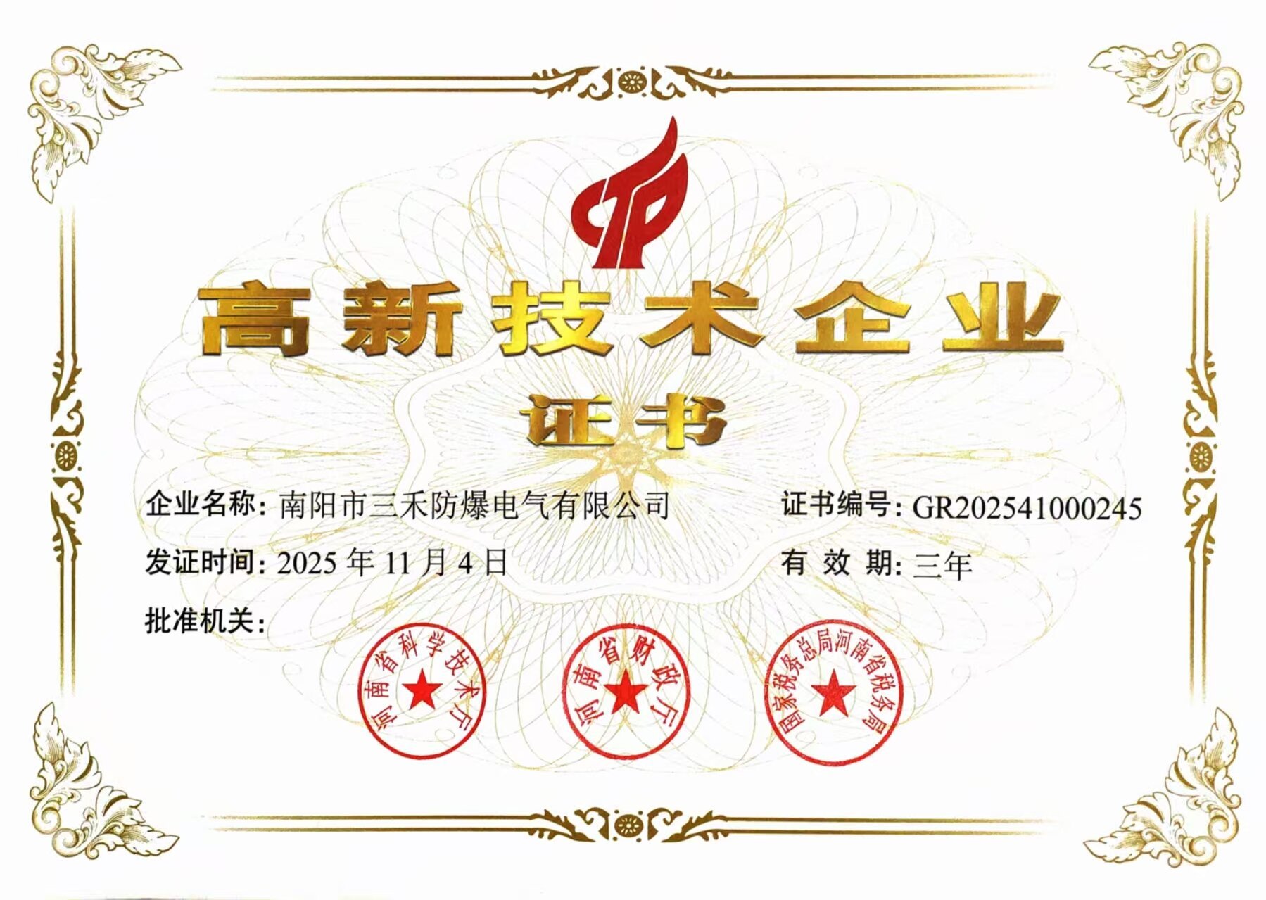 高新技术企业证书