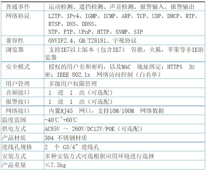 6.防爆规格:BNY防护 等级IP68室内、室外安装,全天候用。
