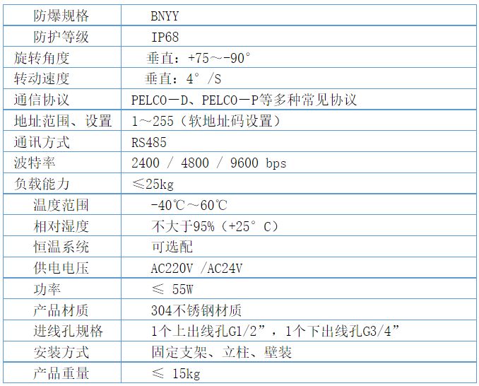 8.通用的RS-485通讯接口,自动识别Pelco-d、Pelco-p控制协议。