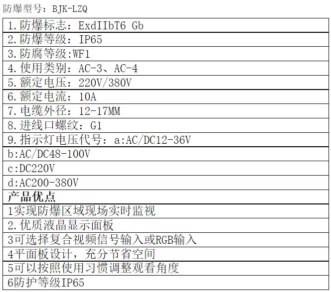 主要用于石油开采、炼油、化工、医药、海洋石油平台、油轮、油库、军工、金属打磨抛光、粮食生产储存等爆炸性气体环境和爆炸性粉尘环境,作为自动化、信息化系统的显示、监视之用;